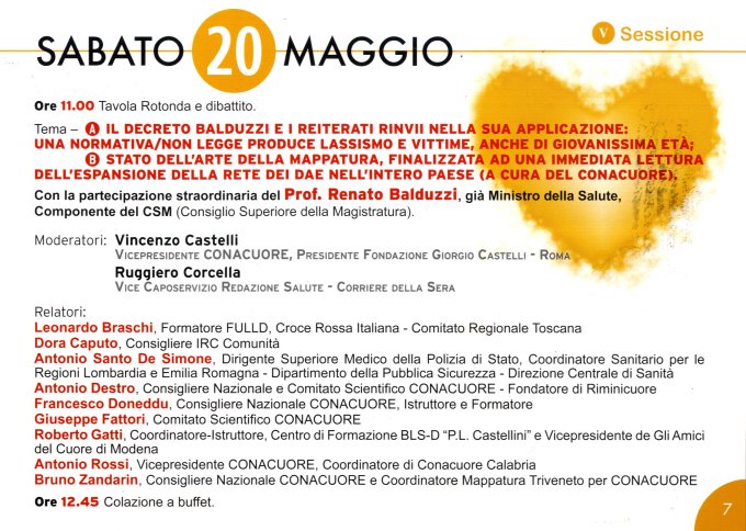 – “Il decreto Balduzzi e i reitrati rinvii nella sua applicazione: una normativa/non legge produce lassismo e vittime anche in giovasnissima età; stato dell’arte della mappatura finalizzata ad una immediata lettura dell’espansione della rete dei dae nell’intero Paese”